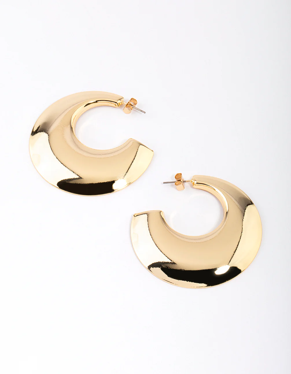 Gold Plated Brass Chubby Disc Hoop Earrings